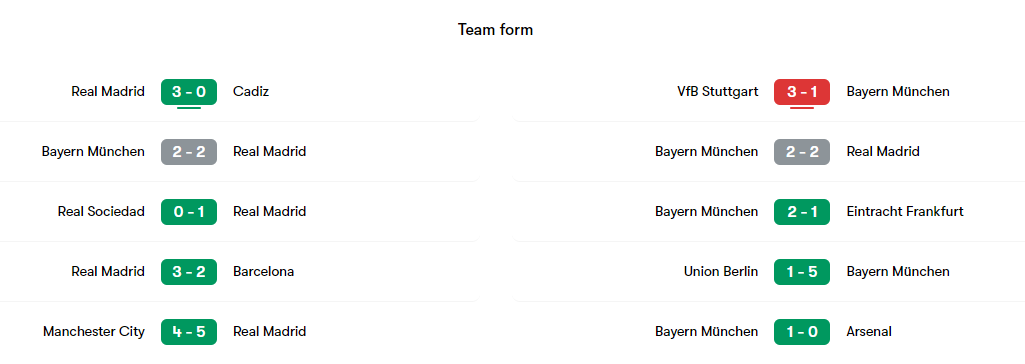 - 레알 마드리드는 최근 바이에른 뮌헨의 홈에서 열린 경기에서 연속 3승을 거두며 강한 면모를 보여주었습니다 (sportingnews).