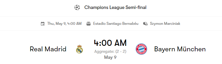레알 마드리드와 바이에른 뮌헨 간의 챔피언스 리그 준결승은 매우 치열한 경기가 될 것으로 예상됩니다. 뮌헨에서 열린 첫 번째 경기는 2-2로 무승부로 끝나면서, 마드리드에서 열릴 2차전이 결정적인 경기가 될 전망입니다 (UEFA.com) (Yahoo Sports).