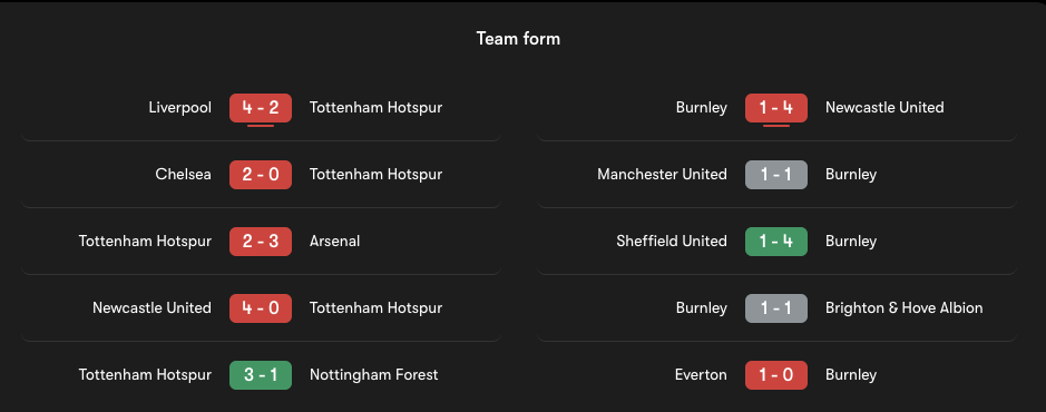 현재 폼 및 팀 역학: 토트넘은 최근 경기에서 좋은 성적을 거두며 자신감을 얻었습니다. 반면, 번리는 최근 6경기에서 단 1승만을 기록하는 등 부진한 모습을 보였습니다 (TheHardTackle.com). 이러한 형세 차이는 특히 홈에서 경기하는 토트넘에게 유리한 조건을 제공할 것으로 보입니다.